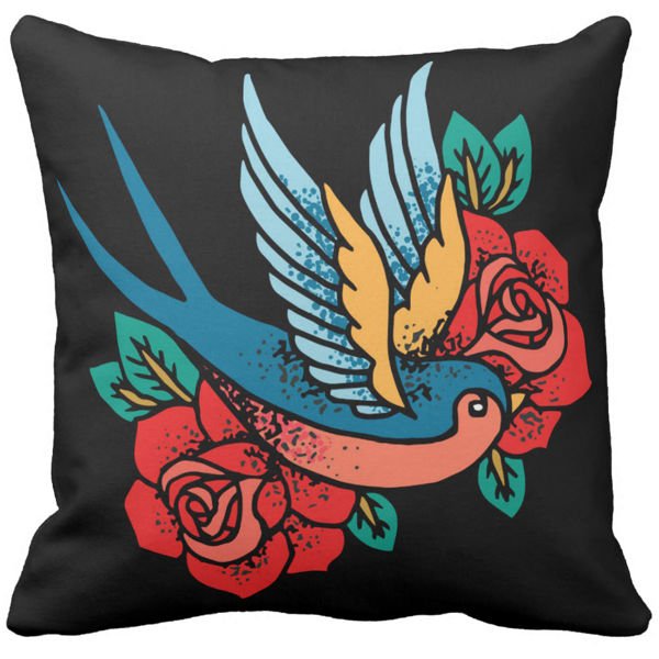 Poduszka gothic tattoo jaskółka róże pod-6842