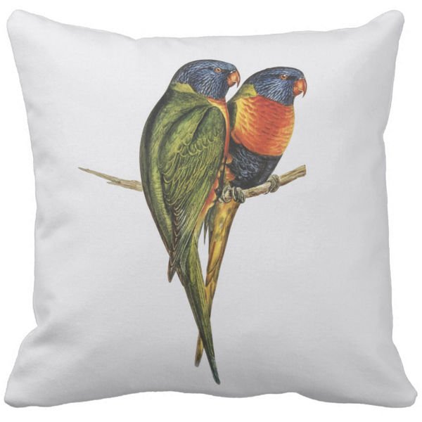 Poduszka ozdobna szara PAPUGI ptak pod-6850