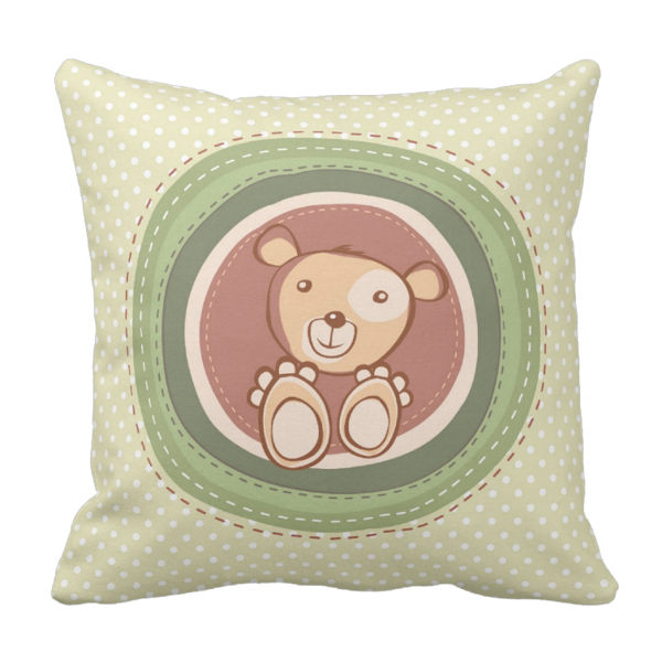 Zielona, urokliwa poduszka na tle w groszki, w której centrum znajduje się sympatyczny miś. Spoczywając na łóżeczku czy fotelu, jasiek będzie przepiękną ozdobą dziecięcego pokoiku. W sklepie ArtMini znajdą Państwo zamykane na suwak poduszki dla dzieci ozdobne z antyalergicznym wkładem w postaci kulek silikonowych, będących alternatywą dla syntetycznego puchu.