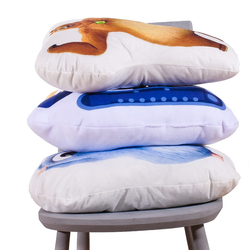 Poduszka przytulanka, maskotka o nieregularnym kształcie. Ta nietuzinkowa poduszka o oryginalnym wzornictwie idealnie sprawdzi się jako na prezent zarówno dla małych jak i trochę większych dzieci :) Środek stanowi antyalergiczne atestowane wypełnienie do zabawek. Tył przytulanki nie posiada aplikacji graficznej