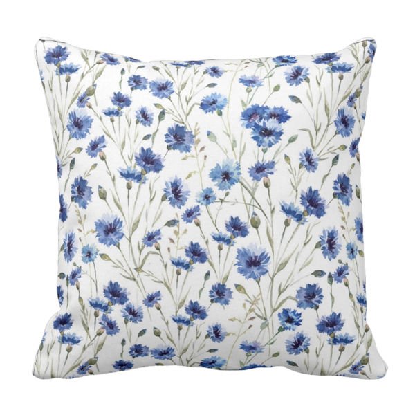Poduszeczka z pięknymi polskimi kwiatami chabrami. Kwiaty te przez każdego kojarzone są z polska wsią, z łanami kolorowych i złocistych zbóż. Chabry są bardzo cenną i ciekawą rośliną ozdobną a do tego niezwykle dekoracyjną i jednocześnie łatwa i przyjemną w uprawie. Nie każdy jednak lubi pracę w ogrodzie i pomiędzy grządkami. Nie wszyscy rodzą się ogrodnikami i mogą sobie pozwolić na wyhodowanie tychże ślicznych kwiatów. Nic straconego, taka poduszeczka przychodzi do Ciebie z odsieczą. Będzie przecudowną dekoracją na każdej sofie i kanapie przywołując na myśl letnie wspomnienia czy wiosenną aurę. Biała poduszeczka z niebiesiutkimi kwiatami będzie prześliczną ozdobą w pokoju kobiety urządzonym z sercem i gustem. Spodoba się Pani, która ceni sobie elegancje, kunszt i styl w każdym wydaniu. Nie pogardzi tą gustowną poduszeczką osoba ,która kocha kwiaty i naturę.