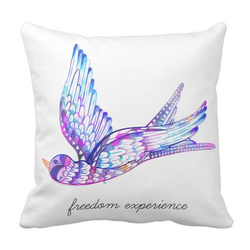 Cudowna, nietuzinkowa, milusia poduszka może być Twoją własnością. Głównym motywem tego jasieczka jest kolorowy ptak. Będzie on symbolizował wolność, której doświadczysz zasypiając na tej unikalnej poduszeczce. Freedom experience taki napis został umieszczony pod skrzydlatym zwierzakiem, który zawsze przypomin Ci o Twojej niezależności. Kolory, którymi został namalowany ptak to odcienie różu, fioletu i niebieskiego. Taka ekscentryczna poduszka przypadnie do gustu osobom dla których świat jest pełen barw, radości i szczęścia. Dekoracja z ozdobnym ptaszkiem będzie pięknie wyglądała w każdym wnętrzu gdzie nie brakuje nonszalancji, wyrazistych kolorów, unikalnych pamiątek z egzotycznych podróży. Będzie idealnym prezentem dla zdeklarowanego singla bądź singiel ki, którzy cieszą się swoją niczym nie skalaną wolnością.