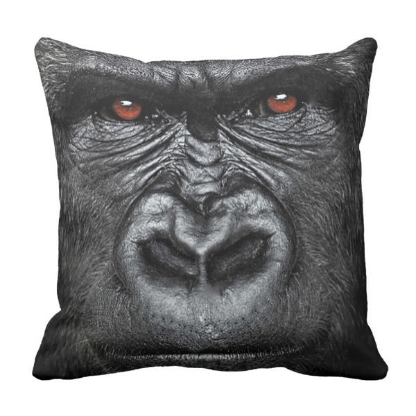 Poduszka z motywem twarzy goryla posiada sama w sobie niezwykłą moc i siłę, która bije z niej gdy się tylko na nią spojrzy. Taki jasiek będzie fantastycznym prezentem dla prawdziwego mężczyzny. Goryl jest symbolem męskości, odwagi, siły. Jeśli Ty sam się czujesz jak prawdziwy „macho” taka ekscentryczna ozdoba powinna znaleźć się w Twoim pokoju. Poduszka z takim gorylem leżącym sobie spokojnie na sofie, kanapie czy fotelu spoglądającym swoimi czerwonymi oczami na każdego kto na niego śmie popatrzeć będzie istnym przekazem- ja tu rządzę! Dodatkowo cały efekt tej dekoracji potęguję bardzo nasycona czerń, która dopasuję się z całą pewnością do męskiej wersji aranżacji mieszkania. I mimo to, że poduszka jest bardzo autentyczna a goryl wygląda jakby miał z niej zaraz wyskoczyć, to nadal , tylko bardzo realna aplikacja a tak naprawdę nic Ci nie grozi.