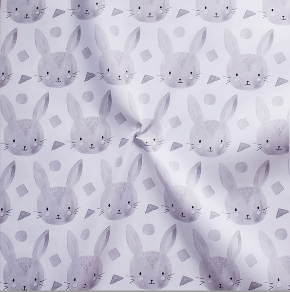Tkanina ćwiartka FQ szary krolik zając na białym MAT-3049