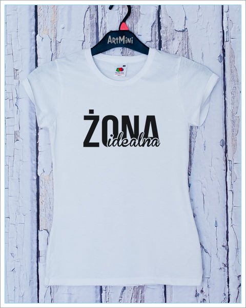 Bluzeczka damska wycięcie w talii. Gruby niespieralny nadruk, tył bluzeczki bez nadruku. Okrągły dekolt ze ściągaczem z dodatkiem elastanu i taśmą na karku.