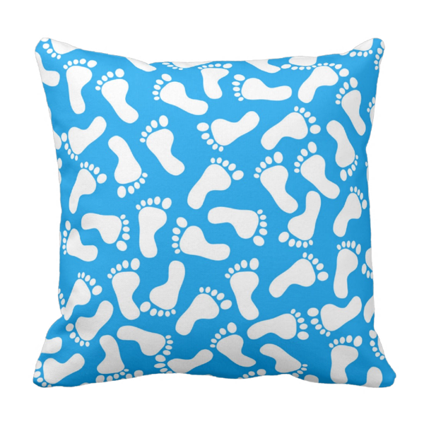 Niebieskie jaśki z powielonym wzorem małych stóp to fikuśna ozdoba do pokoiku dziecięcego. Miękka poduszka, z wypełnieniem z antyalergicznych kulek silikonowych zapewni maluchowi komfortowy sen. O wysokiej jakości świadczy m.in. to, że aplikacja na jaśku nie spiera się w trakcie prania. Poduszki dla dzieci ozdobne z tej serii występują również w wariancie z różowym tłem.